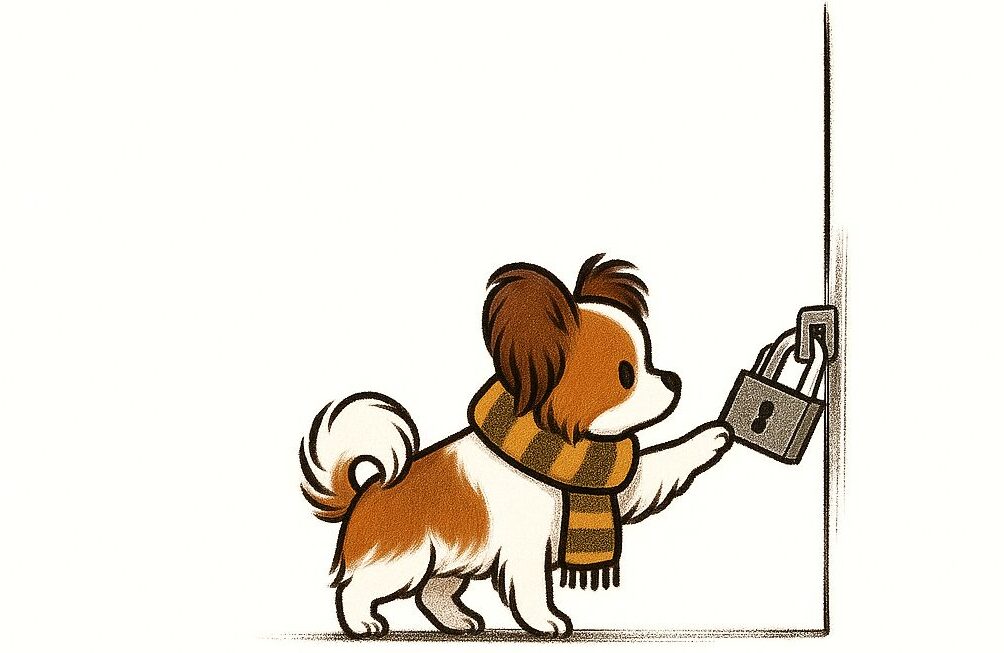 (楽天市場の商品リンク)犬の鍵開けイラスト(スマホのロック画面用)