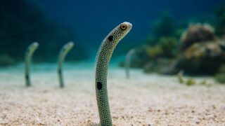 魚類 チンアナゴ チンアナゴとは? 名前の由来は?チンアナゴは、ウナギ目アナゴ科に属する細長い魚で、砂に体を埋めて暮らすユニークな習性で知られています。体の大部分を砂の中に隠し、頭だけを出して揺れる姿が特徴的です。流れてくるプランクトンを口で捕食しながら生活... 2025.09.12 魚類